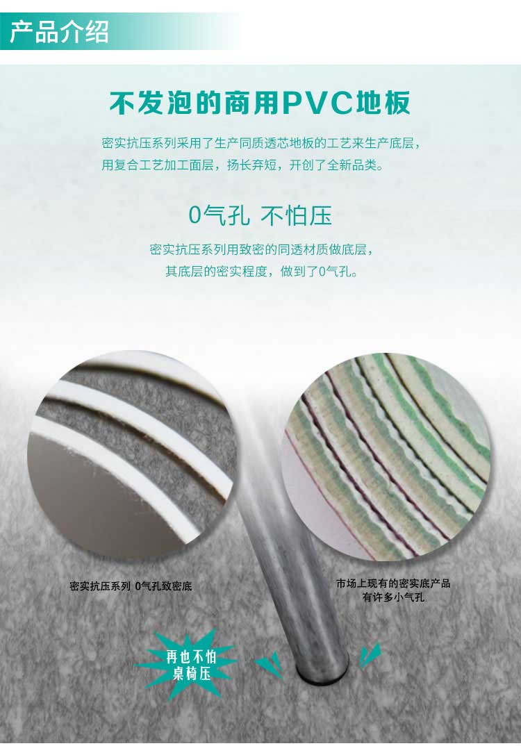 密實抗壓系列采用了生產同質透芯地板的工藝來生產底層,用復合工藝加工面層,揚長棄短,開創了全新品類。